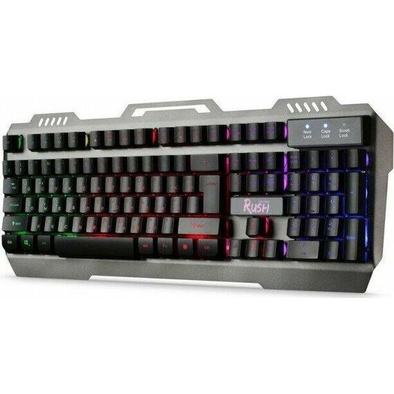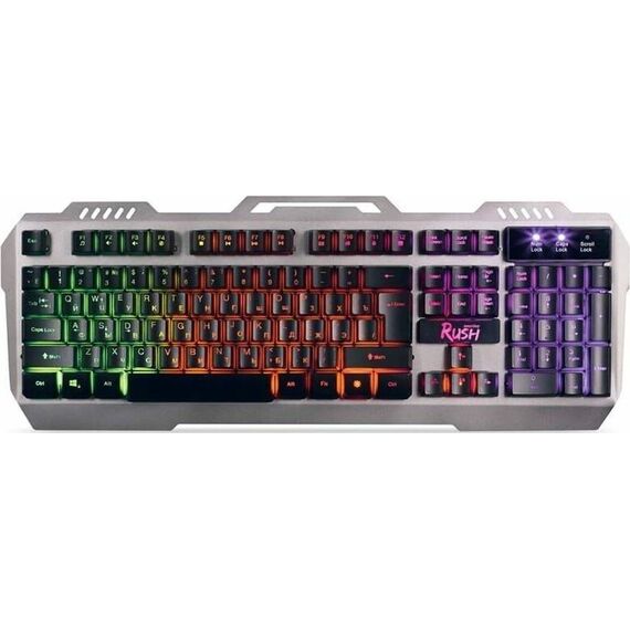 Клавиатура игровая, проводная, мультимедийная,количество клавиш - 104, полноразмерная, стандартная раскладка, дополнительные клавиши - 12 (одновременно с клавишей FN), интерфейс подключения USB, индикаторы - Num Lock / Scroll Lock / Caps Lock , настраиваемая Rainbow подсветка, металлический корпу, технология Anti-ghosting - позволит играть вдвоём на одной клавиатуре, длина кабеля - 1,53 м.