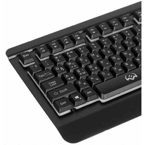 В данной модели разработчикам удалось объединить высочайший уровень прочности, яркое внешнее оформление и целый ряд функций, способных сделать игровой процесс более эффективным и захватывающим. За устойчивость к внешним воздействиям отвечает металлический корпус, готовый к самым суровым испытаниям. При этом вес у клавиатуры хоть и внушительный — чуть меньше килограмма, но не чрезмерный. Его как раз хватает для обеспечения большей устойчивости на столе или другой поверхности, свой вклад в которую вносят и прорезиненные ножки в нижней части корпуса. Количество клавиш - 104. Кол-во клавиш быстрого доступа - 12. Интерфейс - USB. Длина кабеля - 1,8 м. Размеры изделия - 436*190*30 мм. Вес - 950 г.