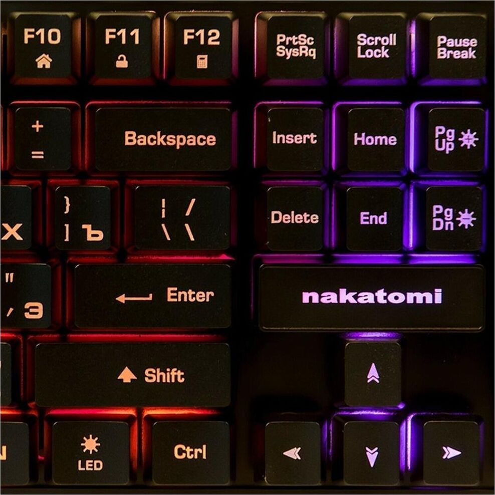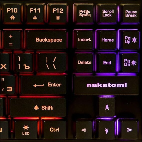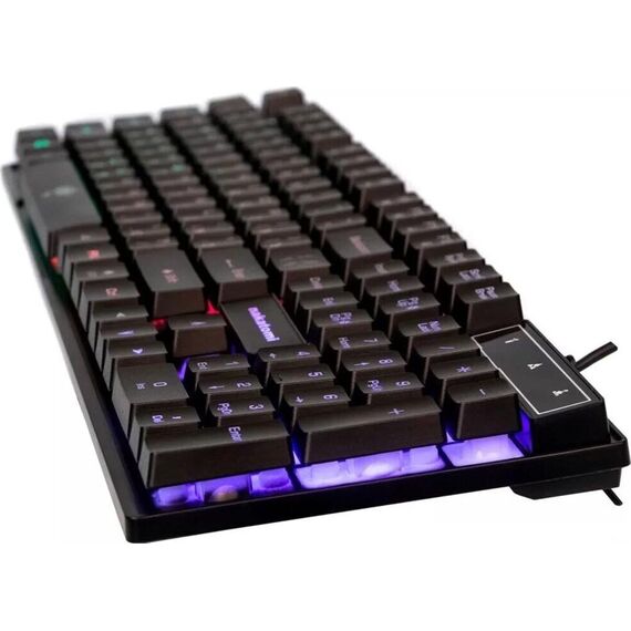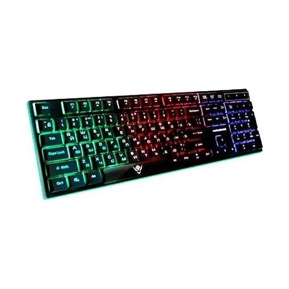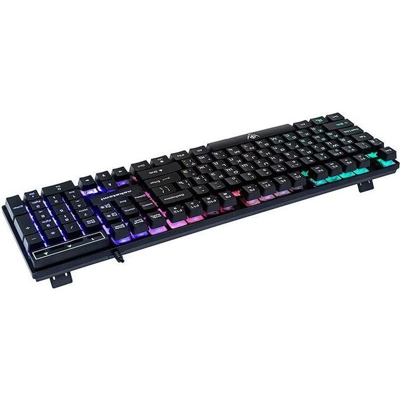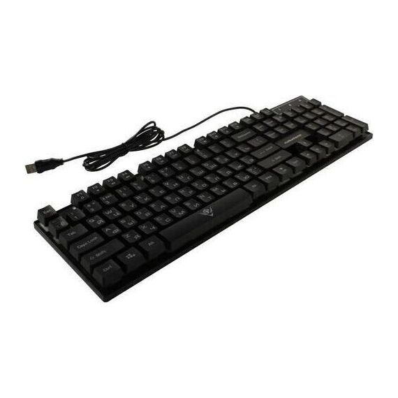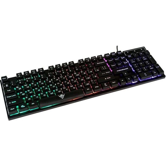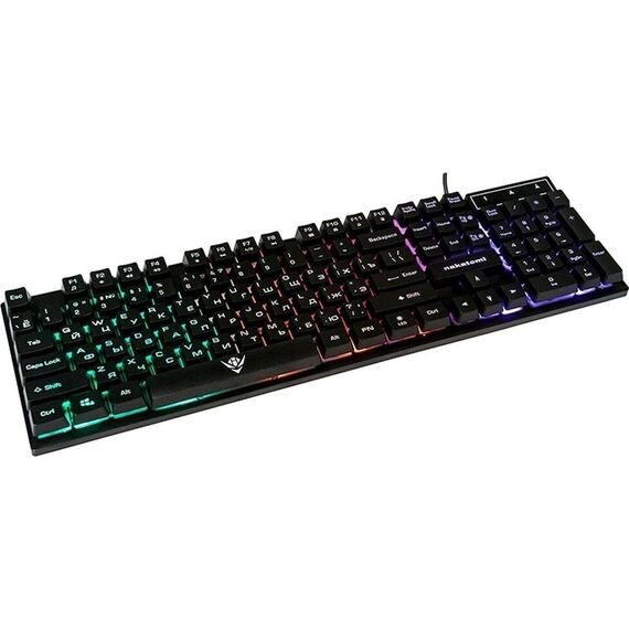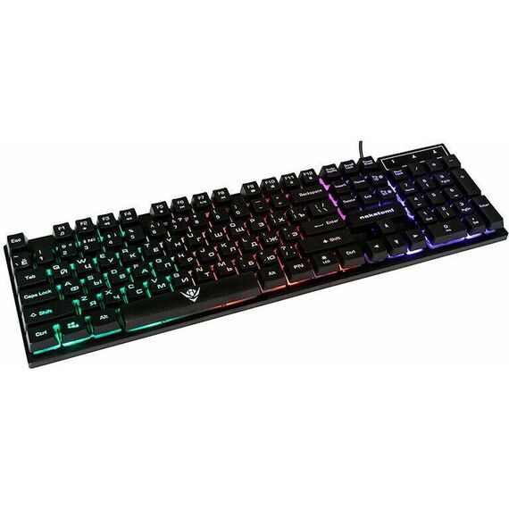 Мультимедийная игровая клавиатура с подсветкой клавиш, проводная, интерфейс - USB, Количество клавиш: 104, мультимедиа-клавиши - комбинированы с F-клавишами, сквозная радужная (многоцветная) подсветка, Регулируемый угол наклона, Клавиши Windows, Длина кабеля: 1.5 м.