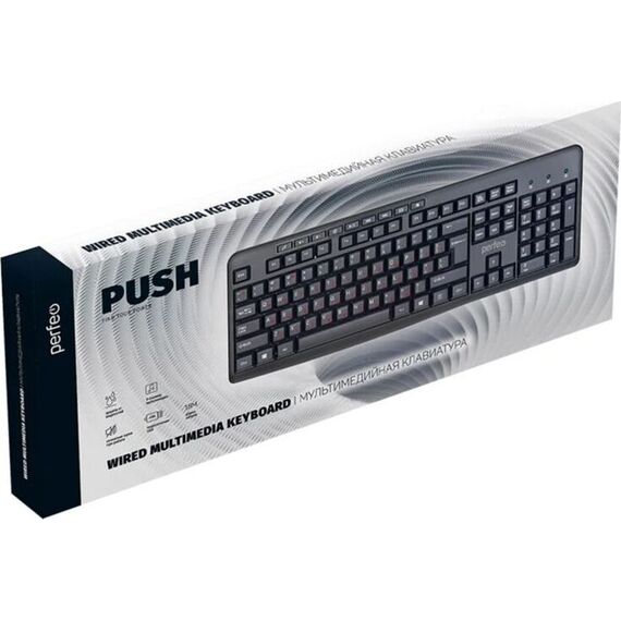 Клавиатура проводная, мультимедийная, интерфейс USB, количество кнопок - 113, количество мультимедийных клавиш - 9, количество функциональных клавиш - 9, защита от влаги, внутренняя LED-подсветка, длина кабеля - 1,8 м.