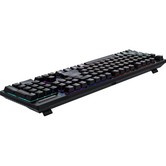 Проводная механическая клавиатура на красных линейных переключателях и регулируемой радужной подсветкой. Клавиатура имеет обширный набор функций для комфортного геймплея: блокировка клавиши WIN, обмен функциями между клавишами WASD и стрелками, все клавиши поддерживают технологию Anti-ghost.