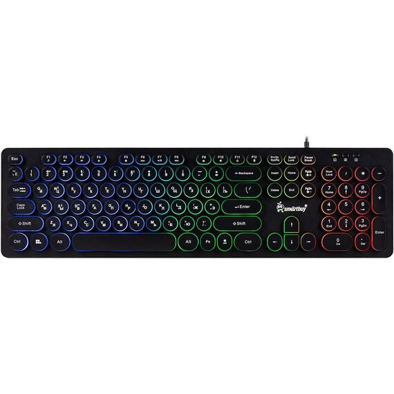 Сочетает в себе качества игровой и офисной модели: эргономичный корпус, мембранные клавиши. Клавиатура идеально подходит для быстрого набора текста. Увеличенное расстояние между клавишами позволяет легко очищать устройство от пыли и грязи. 3 режима многоцветной подсветки с опцией настройки яркости и отключения, а также выбор между постоянной и мерцающей подсветкой. Мультимедийные клавиши позволяют регулировать громкость и управлять воспроизведением музыки. Увеличенный до 10 млн ресурс нажатий. Питание USB