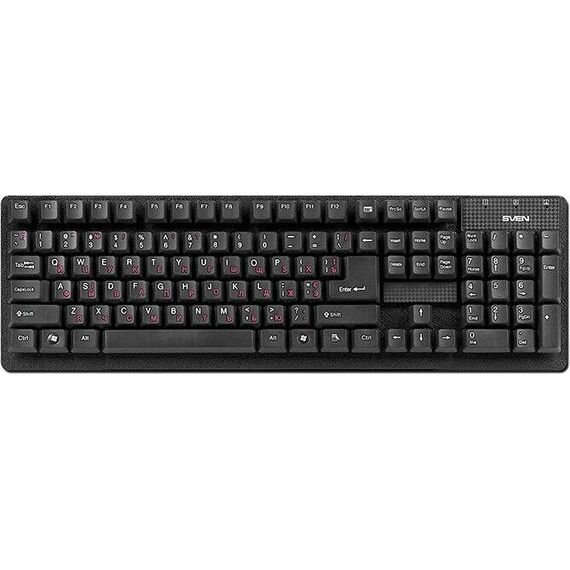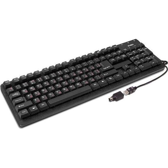 Проводная полноразмерная клавиатура, относящаяся к ультрабюджетным моделям. Подойдет для пользователей, которым не нужны излишества игровых клавиатур или обилие дополнительных функций — модель сочетает в себе максимальную простоту и функциональность. Устройство имеет классическую раскладку, которая делает работу с девайсом более комфортной и обеспечивает высокую скорость печати. Есть клавиша быстрого доступа к калькулятору, что очень пригодится как для работы в офисе, так и для домашнего использования. Влагоустойчивая конструкция. Количество клавиш - 105. Кол-во клавиш быстрого доступа - 1. Контакты клавиш - мембранные с тактильной обратной связью. Размеры изделия - 436*25*136 мм. Вес - 410 г.