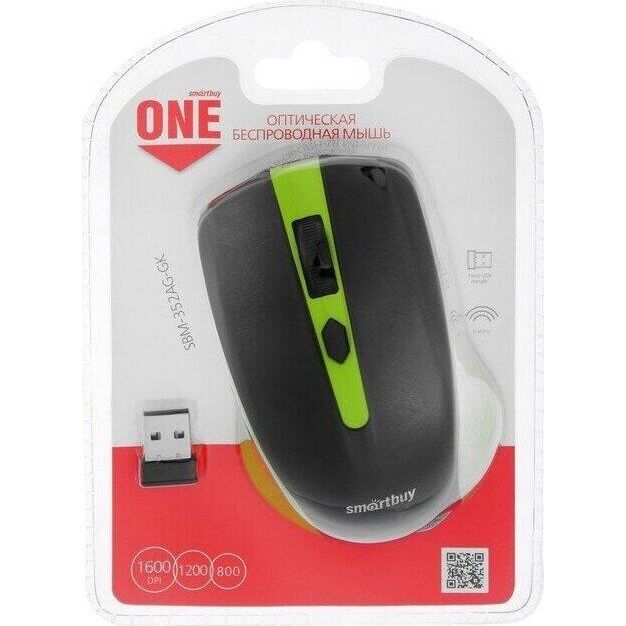 Мышь беспроводная оптическая SMARTBUY (SBM-352AG-GK) ONE 352 зелено-черная