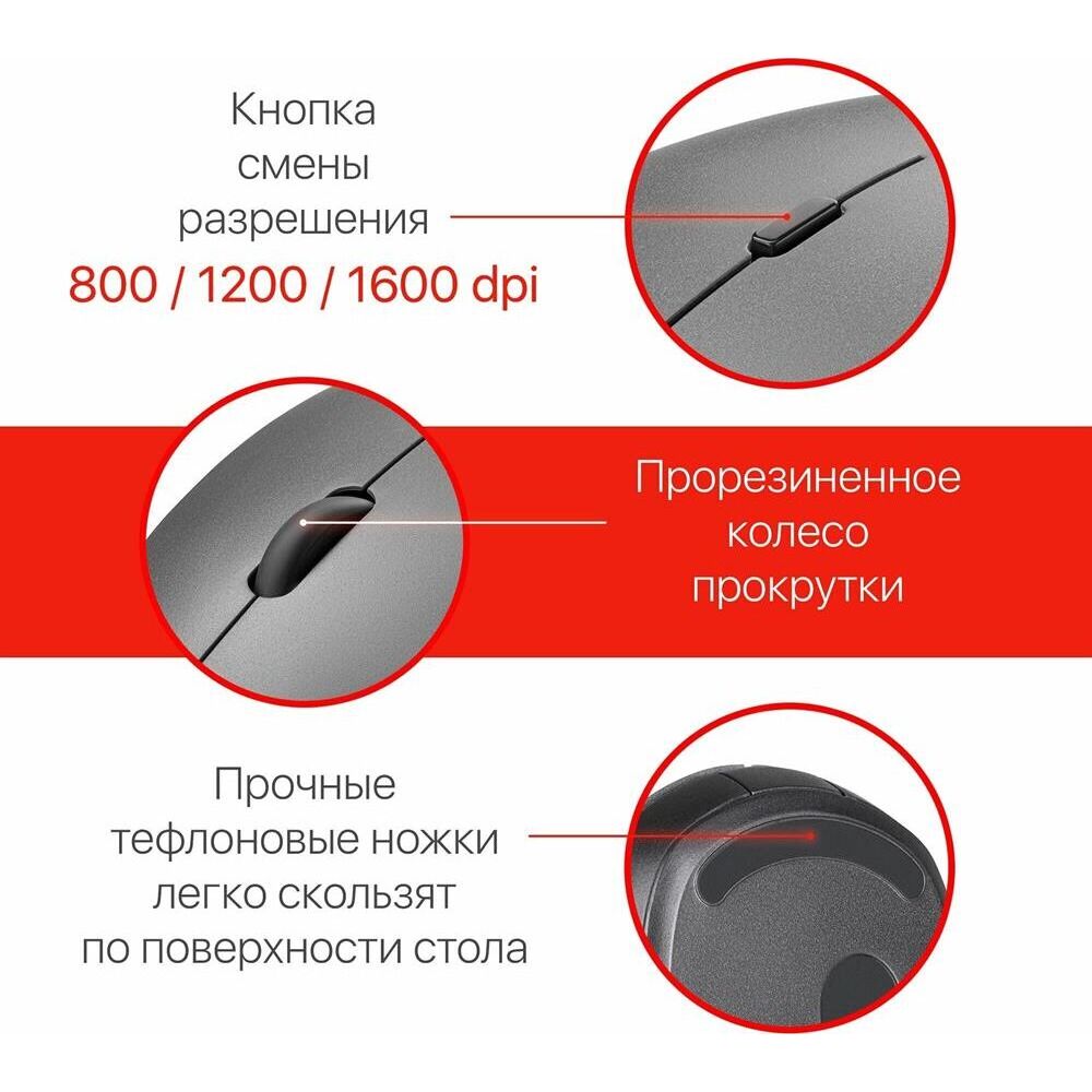 Тип подключения: беспроводной Интерфейс подключения: USB Количество кнопок: 3 + колесо-кнопка Тип сенсора: оптический Разрешение сенсора мыши, DPI: 800 / 1200 / 1600 Разрешение: 800/1200/1600 dpi Минимальное значение DPI: 800 dpi Максимальное значение DPI: 1600 dpi Количество нажатий: 5 миллионов Бесшумные кнопки: есть Тефлоновые ножки: есть Питание: 1 × AA Цвет: серый ROHS / CE: Да Радиус действия: 0–10 м Масса индивидуальной упаковки: 0.08 кг Масса без упаковки: 0.06 кг Размеры без упаковки: 6.3 x 3.7 x 10.5 см Системные требования для ПК: Windows 2000/XP/Vista/7/8/10/11 Mac OS X10 Гарантийный срок: 6 месяцев