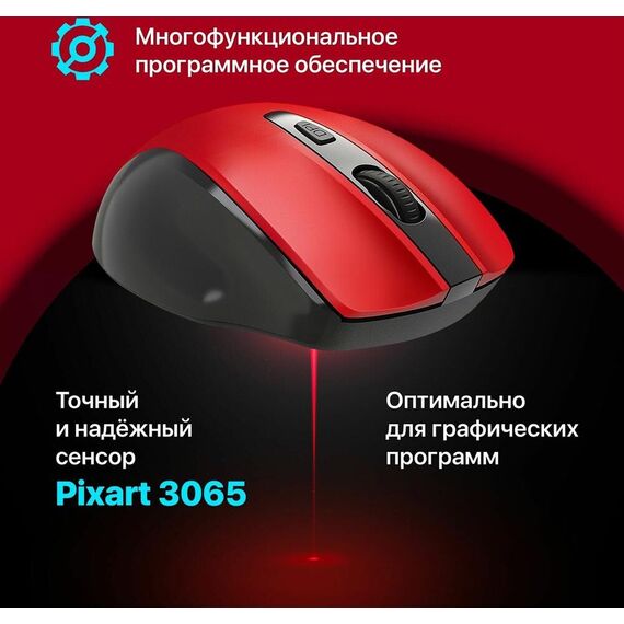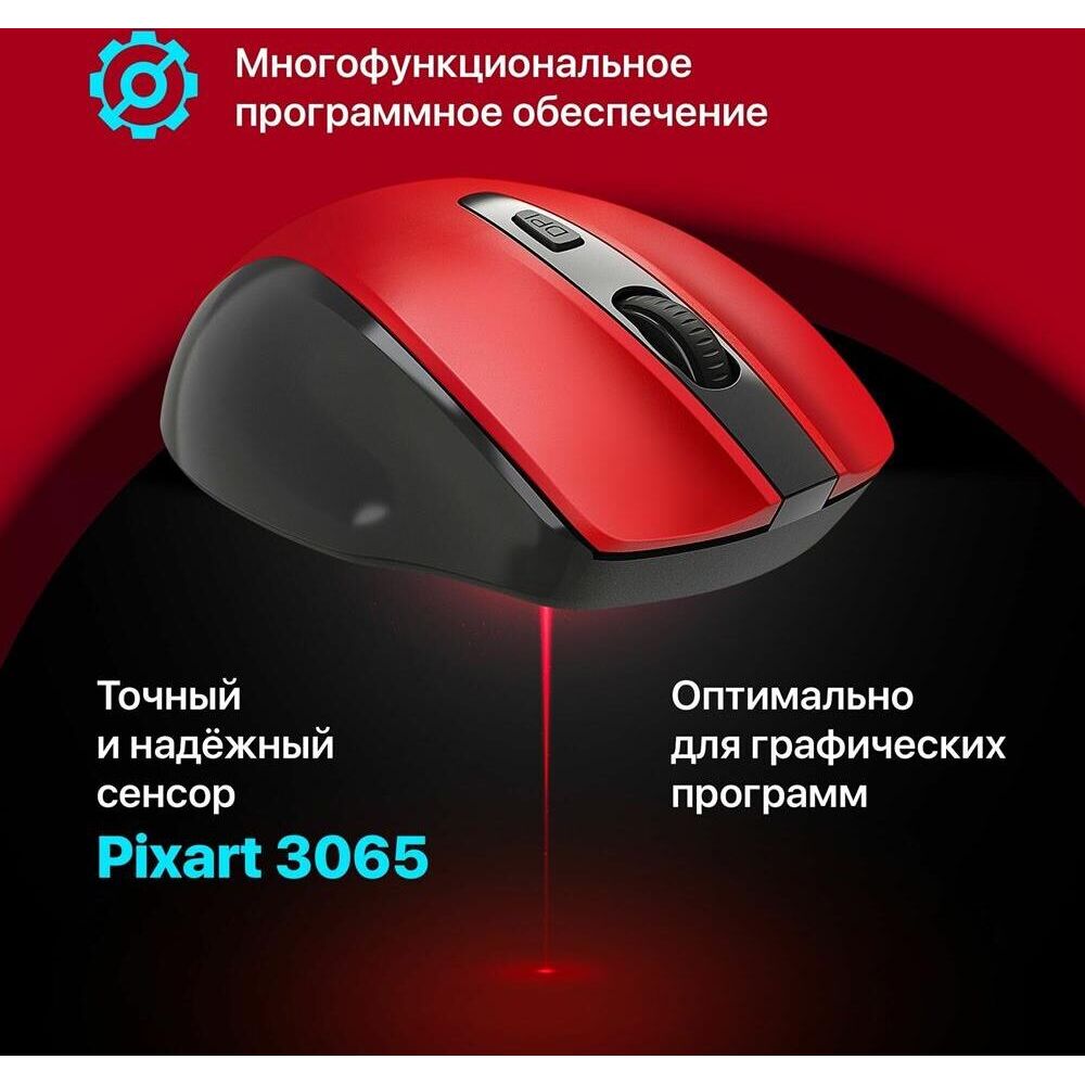 Тип подключения: беспроводной Интерфейс подключения: USB Количество кнопок: 5 + колесо-кнопка Тип сенсора: оптический Разрешение сенсора мыши, DPI: 800 / 1200 / 1600 Разрешение: 800/1200/1600 dpi Минимальное значение DPI: 800 dpi Максимальное значение DPI: 1600 dpi Количество нажатий: 5 миллионов Бесшумные кнопки: есть Тефлоновые ножки: есть Питание: 1 × AA Цвет: красный ROHS / CE: Да Радиус действия: 0–10 м Масса индивидуальной упаковки: 0.09 кг Масса без упаковки: 0.06 кг Размеры без упаковки: 7.1 x 4.0 x 10.9 см Системные требования для ПК: Windows 2000/XP/Vista/7/8/10 и выше, Mac OS X10 Гарантийный срок: 6 месяцев