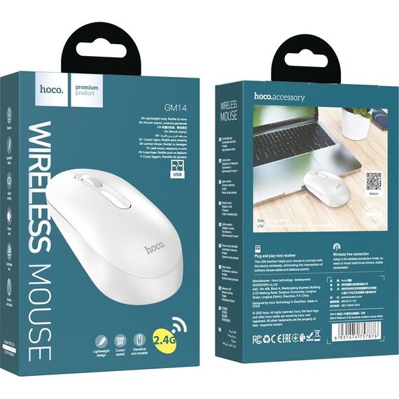 Мышь беспроводная, интерфейс подключения USB, количество кнопок - 2 шт., колесо прокрутки, разрешение - 1200 dpi, датчик высокой точности, тихий ход, радиус действия до 10 м.