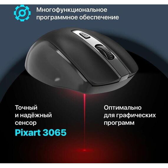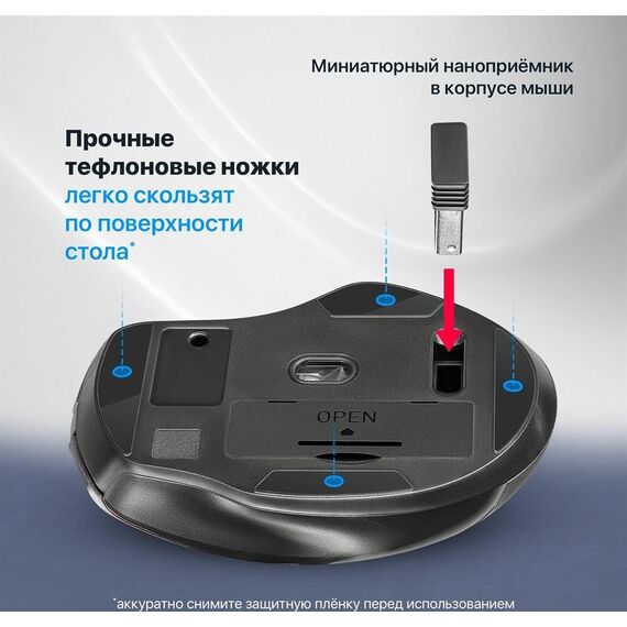 Тип подключения: беспроводной Интерфейс подключения: USB Количество кнопок: 5 + колесо-кнопка Тип сенсора: оптический Разрешение сенсора мыши, DPI: 800 / 1200 / 1600 Разрешение: 800/1200/1600 dpi Минимальное значение DPI: 800 dpi Максимальное значение DPI: 1600 dpi Количество нажатий: 5 миллионов Бесшумные кнопки: есть Тефлоновые ножки: есть Питание: 1 × AA Цвет: чёрный ROHS / CE: Да Радиус действия: 0–10 м Масса индивидуальной упаковки: 0.09 кг Масса без упаковки: 0.06 кг Размеры без упаковки: 7.1 x 4.0 x 10.9 см Системные требования для ПК: Windows 2000/XP/Vista/7/8/10 и выше, Mac OS X10 Гарантийный срок: 6 месяцев