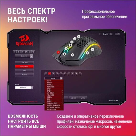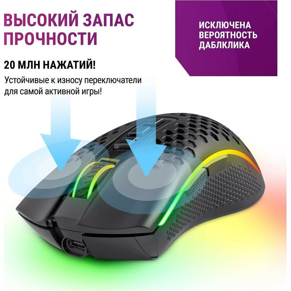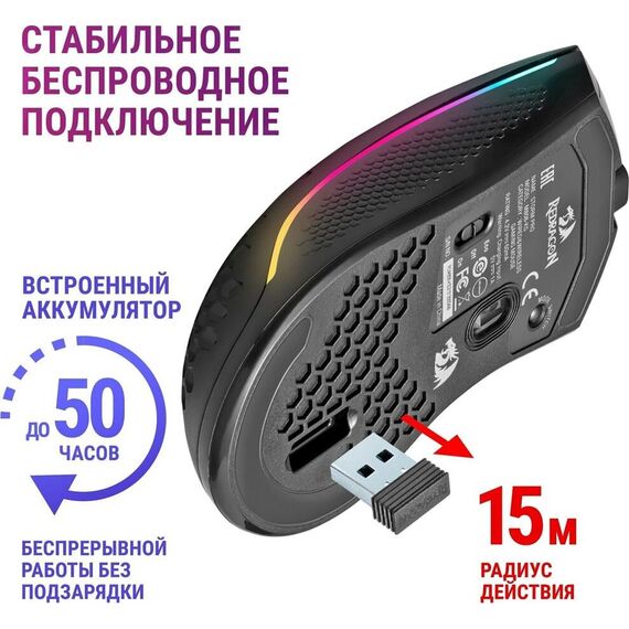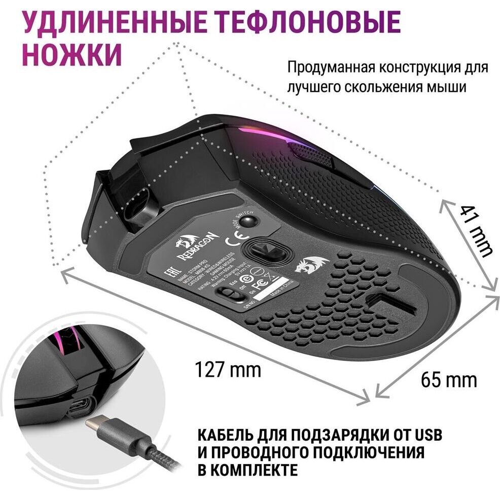 Беспроводная игровая мышь REDRAGON (78127) Storm Pro RGB,16000dpi, проводная