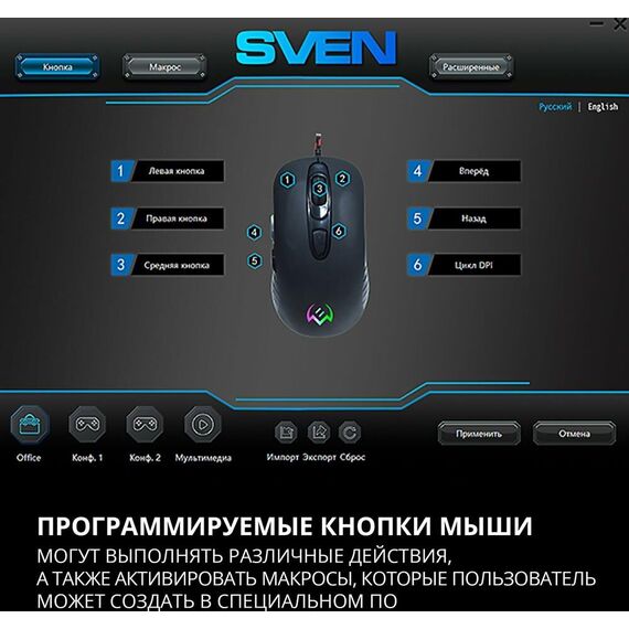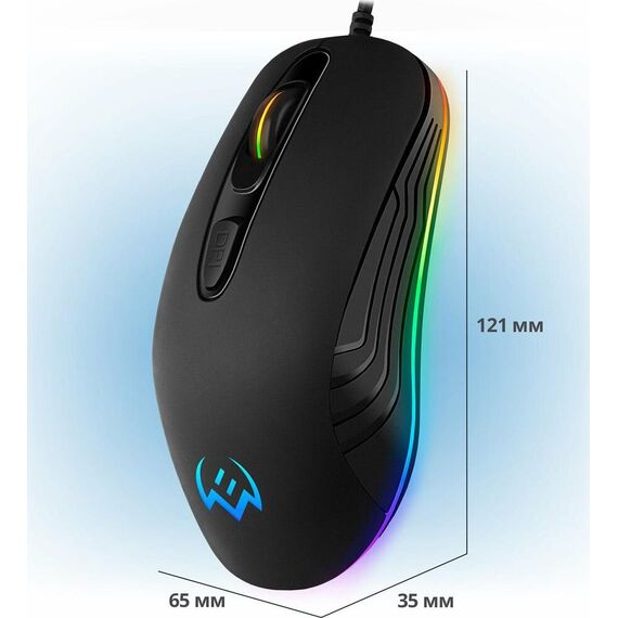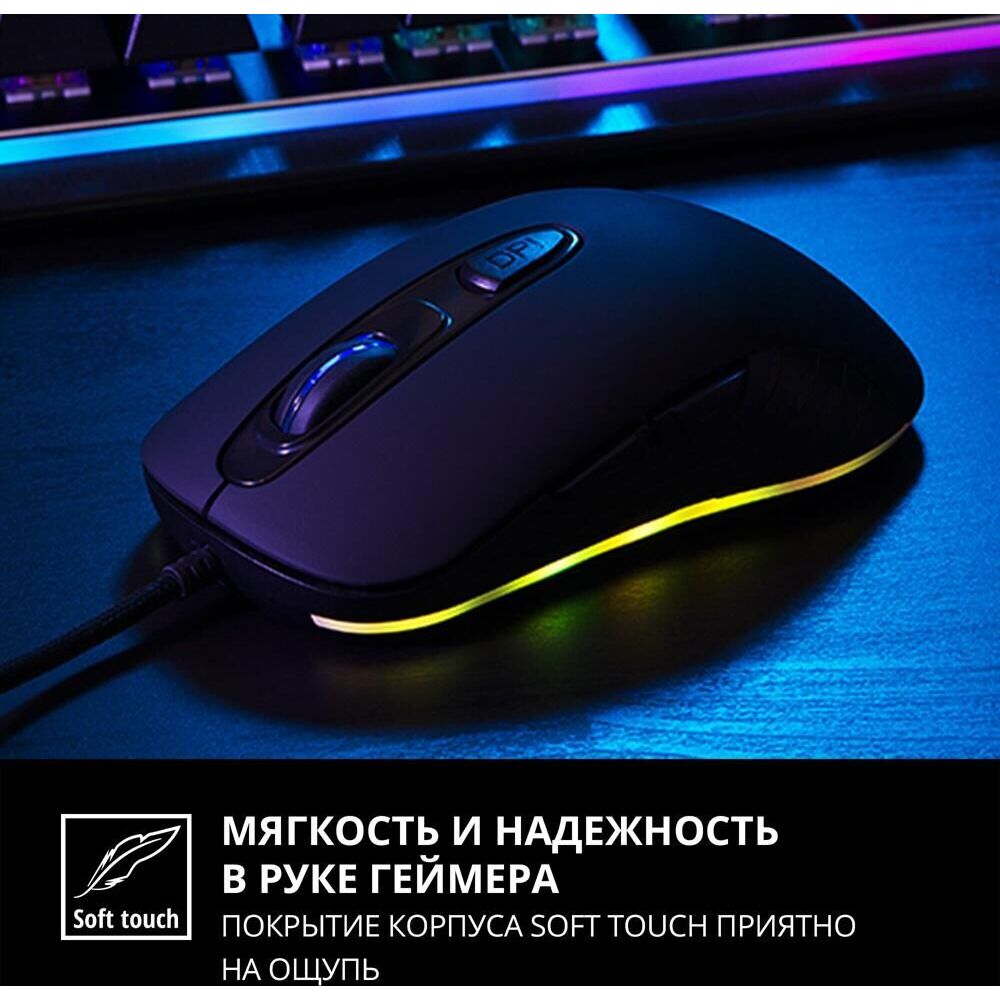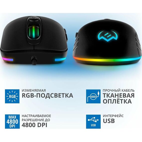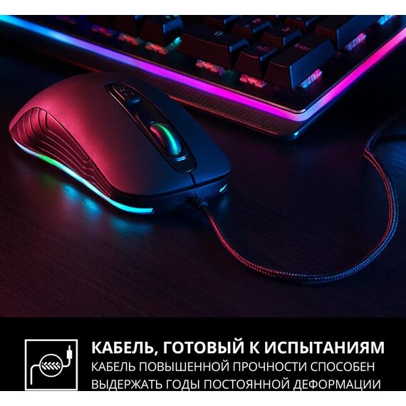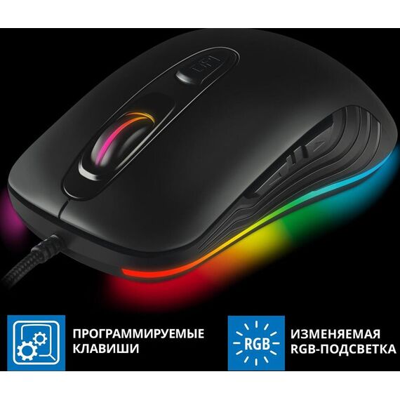 Игровая мышь , проводная, оптическая, Количество кнопок - 6, колесо прокрутки, разрешающая способность, DPI 500-6000, интерфейс - USB, RGB-подсветка, специальное программное обеспечение позволяет изменять функции клавиш, а также создавать макросы, кабель в тканевой оплетке, длина кабеля - 1,8 м.