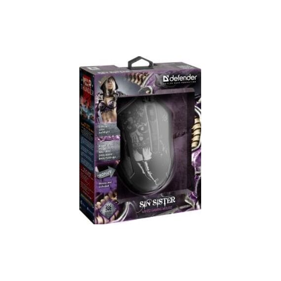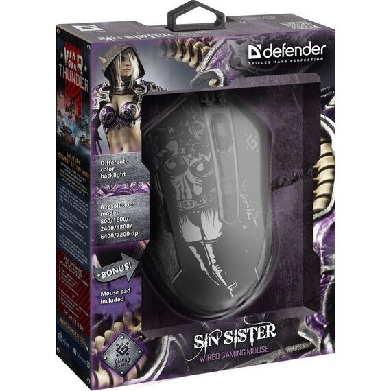 Мышь игровая, проводная, интерфейс подключения USB, тип сенсора - оптический, переливающаяся подсветка, количество кнопок 5 + колесо-кнопка, разрешение изменяемое - 800/1600/2400/4800/6400/7200 dpi, 5 программируемых кнопок, эргономичная форма, длина кабеля 1.5 (±5%) м.
