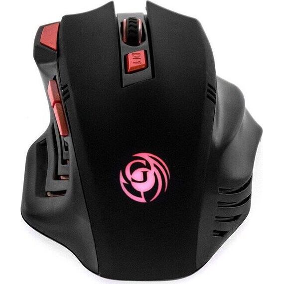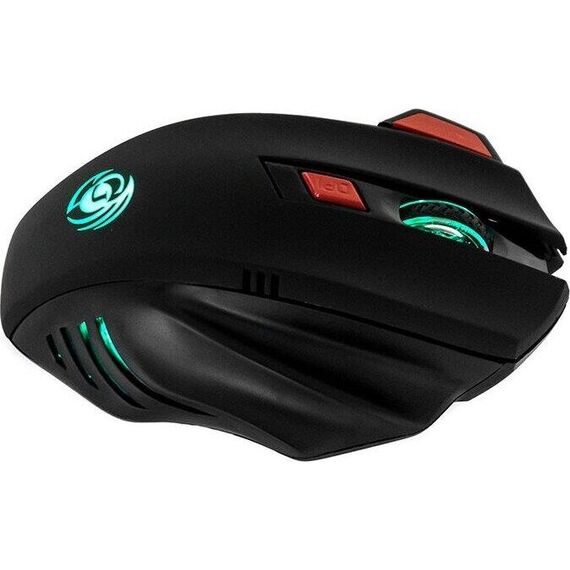 Геймерская мышь, беспроводная, интерфейс USB, динамически изменяемое разрешение 600/800/1200/1600, количество кнопок - 6, вертикальная прокрутка, материал корпуса матовый черный пластик, верхняя панель с кнопками - пластик софт-тач, встроенный перезаряжаемый аккмулятор, тип элементов питания -Li-Ion.