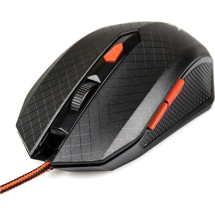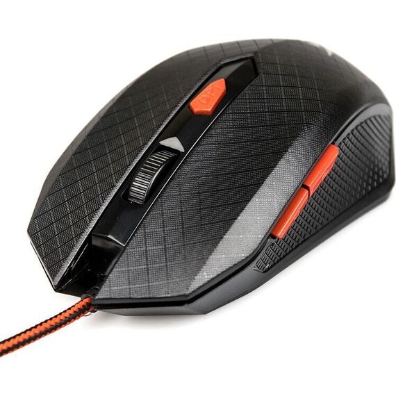 Интерфейс: USB, Тип: Оптическая (видимый диапазон), Разрешение: 800/1200/1600/ 2400, Динамически изменяемое разрешение, изменяется циклически кнопкой "DPI", Материал корпуса: пластик, фактурное тиснение в верхней и боковых частях, Количество кнопок: 6, Прокрутка: вертикальная, Особенности модели: Текстильная оплётка кабеля, Длина кабеля, м: 1.5.
