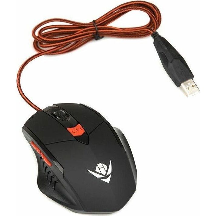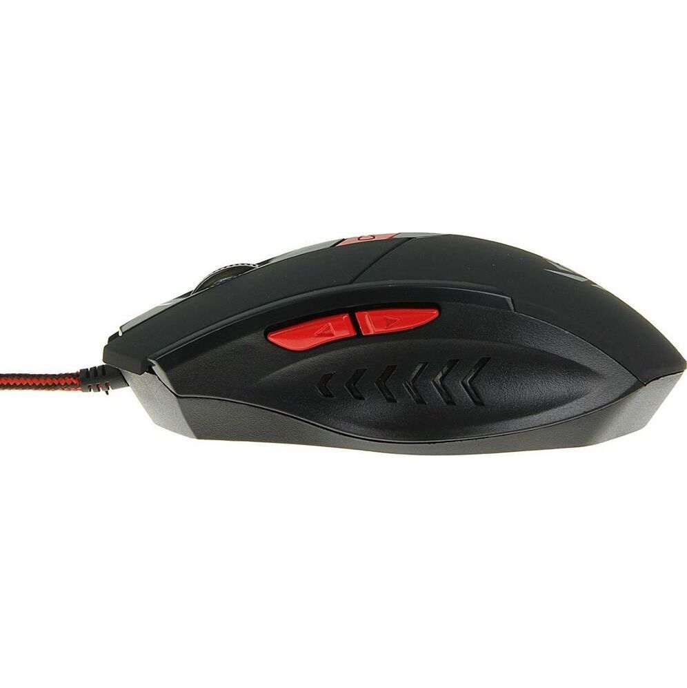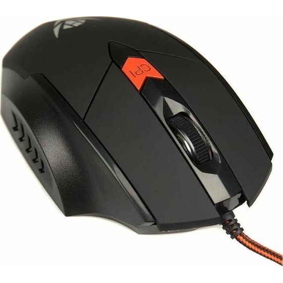 Игровая оптическая проводная мышь. Крупная асимметричная мышь с дополнительными кнопками управления под большим пальцем правой руки. Будет удобна правшам с крупной ладонью. Материал корпуса пластик софт-тач. Динамически изменяемое разрешение изменяется циклически кнопкой "CPI" (800/1200/1600/2400dpi). Интерфейс подключения USB 2.0. Количество кнопок - 6. Размер - 115*78*36 мм. Вес - 110 г.