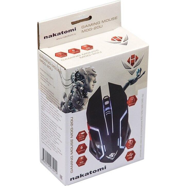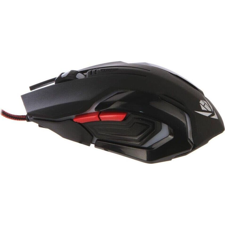 Интерфейс: USB, Тип: Оптическая (видимый диапазон), Разрешение: 800/1200/1600/ 2400, Динамически изменяемое разрешение, изменяется циклически кнопкой "DPI", Материал корпуса: матовый черный пластик, глянцевый чёрный пластик, верхняя панель с кнопками - пластик софт-тач. Вставки из полупрозрачного светлого пластика (подсветка). Красные дополнительные кнопки, Количество кнопок: 6, Прокрутка: вертикальная, полупрозрачный пластиковый ролик с резиновым ободом Особенности моделиКрупная асимметричная мышь с дополнительными кнопками управления под большим пальцем правой руки. Боковые кнопки "вперёд" и "назад" с коротким ходом, Длина кабеля, м: 1.5м текстильная оплётка.