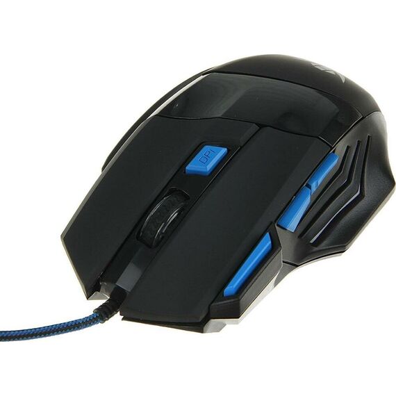 Интерфейс: USB, Тип: Оптическая (видимый диапазон), Разрешение: 800/1200/1600/ 2400, Динамически изменяемое разрешение, изменяется циклически кнопкой "DPI" Материал корпусапластик софт-тач, Количество кнопок: 7, Прокрутка: вертикальная, Особенности модели: Текстильная оплётка кабеля, Длина кабеля, м: 1.5.
