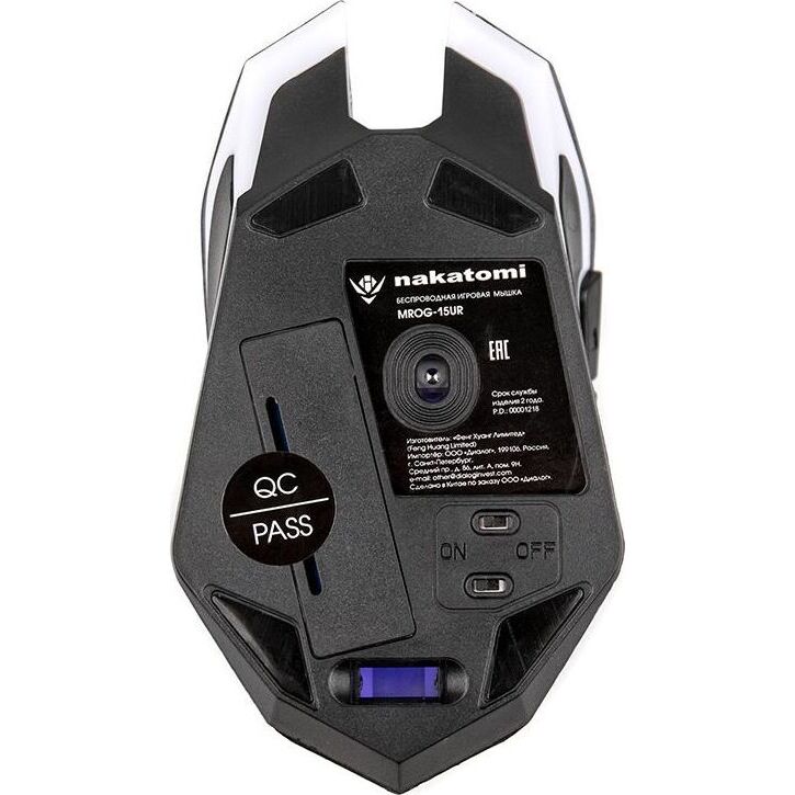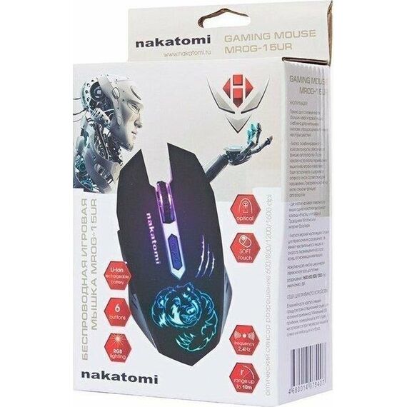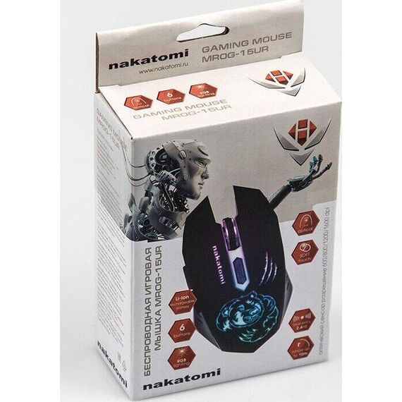 Интерфейс: USB, Тип: Оптическая (видимый диапазон), Разрешение: 600/800/1200/ 1600, Динамически изменяемое разрешение, изменяется циклически кнопкой "CPI", Материал корпуса: Верхняя панель с кнопками - чёрный пластик софт-тач, Может быть отключена выключателем на нижней панели, Кол-во кнопок: 6, Прокрутка: вертикальная, прозрачный пластиковый ролик с нескользящим резиновым ободом, Беспроводная: радиоинтерфейс 2.4 гГц, радиус действия до 10 метров, Съемные/встроенные аккумуляторы: встроенный перезаряжаемый аккмулятор, Тип элементов питания: Li-Ion 400mAh, Блок питания / ЗУКабель USB-MicroUSB для подзарядки встроенного аккумулятора, Длина кабеля, м: 1.7м (кабель для подзарядки).