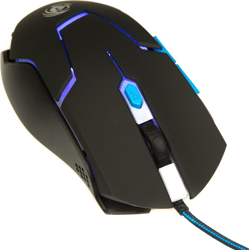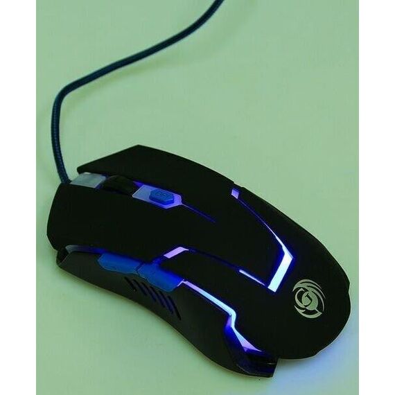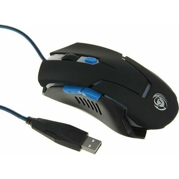 Геймерская мышь, интерфейс USB, оптическая (видимый диапазон), разрешение 800/1200/1600/2400, динамически изменяемое разрешение, изменяется циклически кнопкой "DPI", материал корпуса пластик софт-тач, количество кнопок 6, вертикальная прокрутка.
