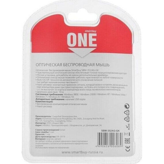 Мышь проводная, оптическая, количество кнопок - 2 кнопки + кнопка-колесо, изменяемое разрешение - 800/1200/1600 dpi, интерфейс подключения - USB, длина кабеля - 1,2 м.