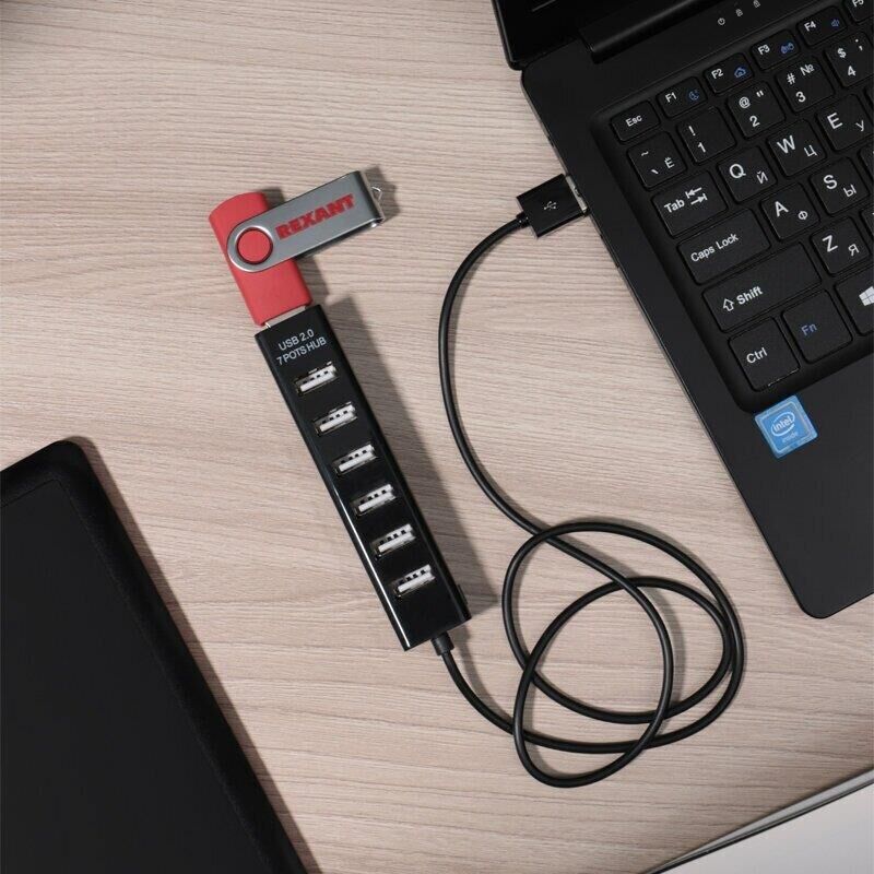 Контроллеры, адаптеры, переходники REXANT (18-4107) РАЗВЕТВИТЕЛЬ USB НА 7 ПОРТОВ, ЧЕРНЫЙ