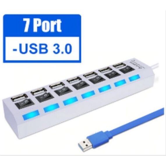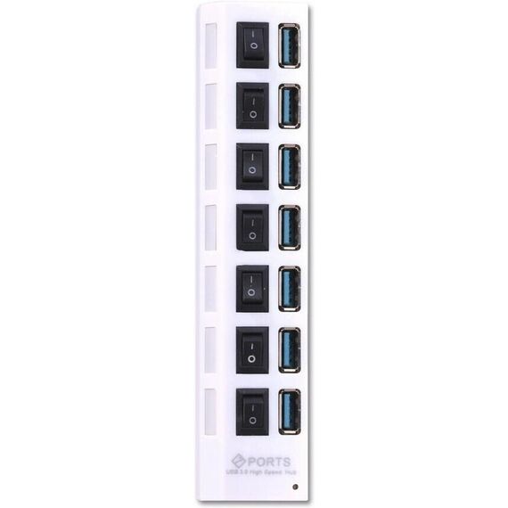 Концентратор, Материал корпуса - Пластик; Разъемы - 7 х USB Type A 3.0; Выключатели порта с индикацией; Максимальная скорость чтения/записи: 5 гбит/с; Вес: 80 грамм; Упаковка: пластиковый блистер со стикером; Режим работы: OTG