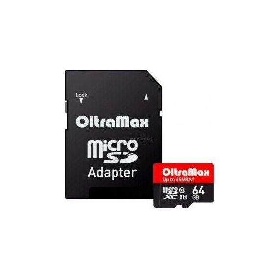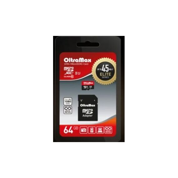 Карта памяти OLTRAMAX MicroSDXC 64GB Class 10 UHS-1 Elite + адаптер SD 45 MB/s [OM064GCSDXC10UHS-1-ElU1]