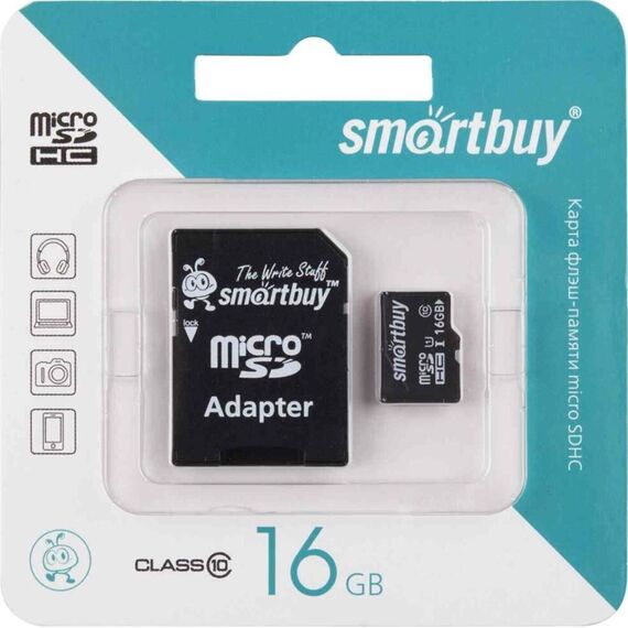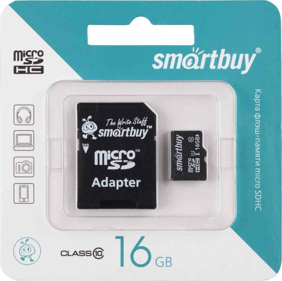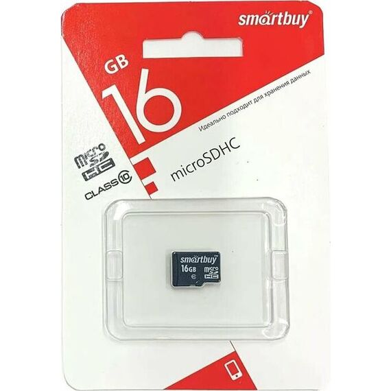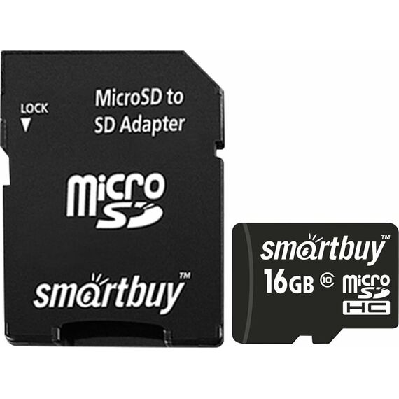 Карта памяти SMARTBUY (SB16GBSDCL10-01) MicroSDHC 16GB Сlass10 + адаптер