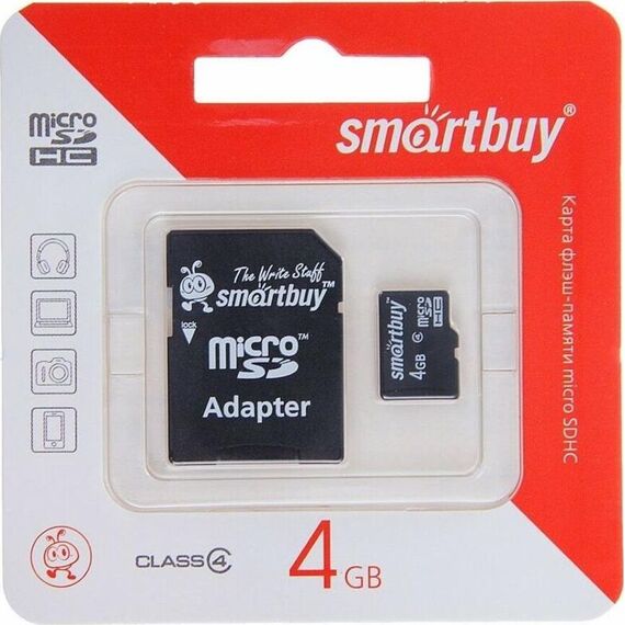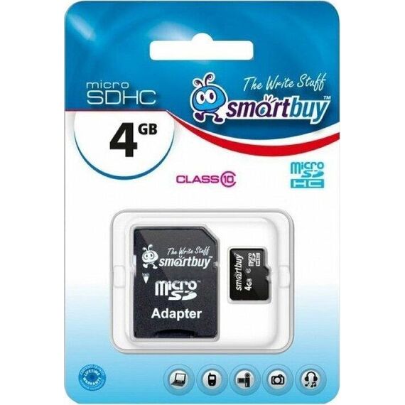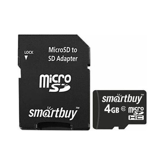 Карта памяти SMARTBUY (SB4GBSDCL10-01) MicroSDHC 4GB Class10 + адаптер