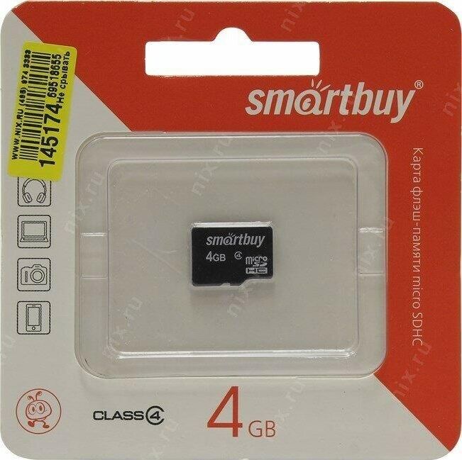 Карта памяти SMARTBUY (SB4GBSDCL4-00) MicroSDHC 4GB Class4