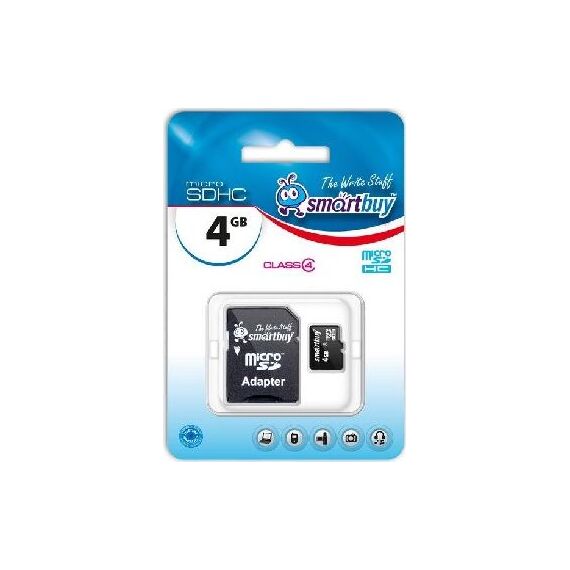 Карта памяти SMARTBUY (SB4GBSDCL4-01) MicroSDHC 4GB Class4 + адаптер