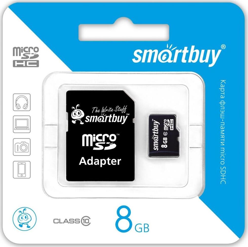 Карта памяти SMARTBUY (SB8GBSDCL10-01) MicroSDHC 8GB Сlass10 + адаптер