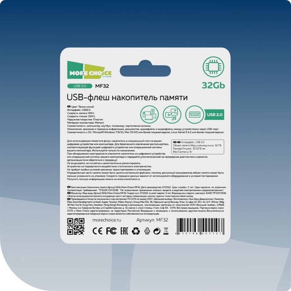 флэш-накопитель MORE CHOICE (4610196401107) MF32 USB 32GB 2.0 Dark Blue