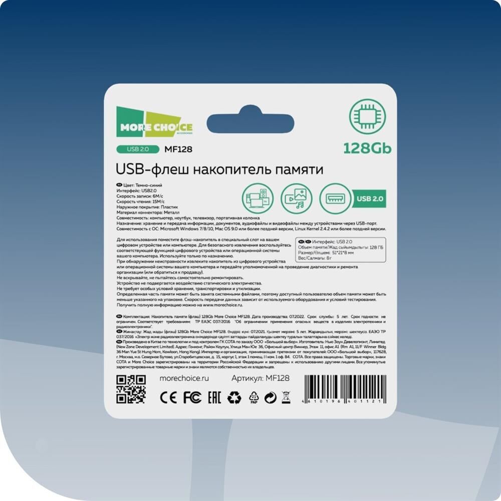 флэш-накопитель MORE CHOICE (4610196401121) MF128 USB 128GB 2.0 Dark Blue