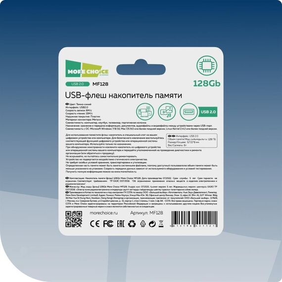 Флеш накопитель памяти USB 128GB 2.0 More Choice MF128
