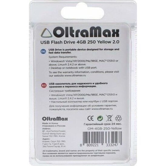USB флэш-накопитель OltraMax 4GB 250 Yellow
