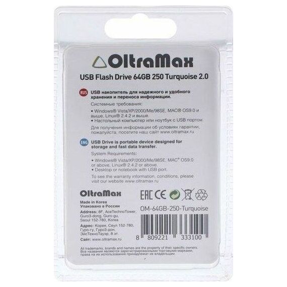 USB флэш-накопитель OLTRAMAX OM-64GB-250-бирюзовый