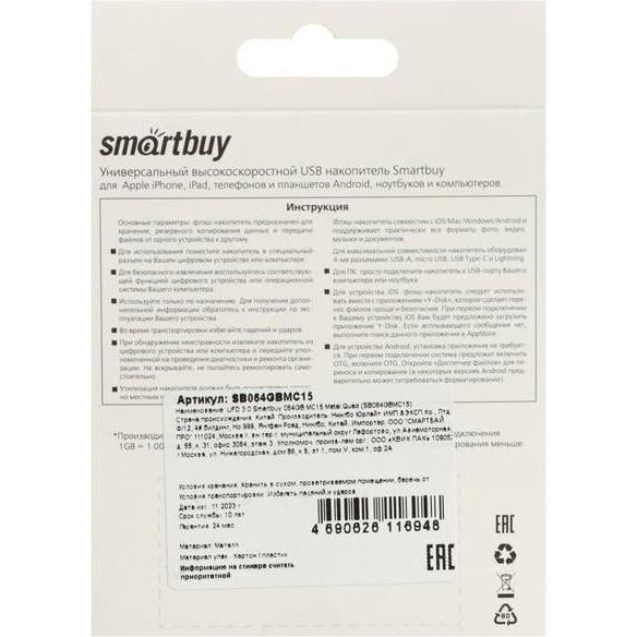 USB-флэш SMARTBUY (SB064GBMC15) 064GB MC15 Metal Quad