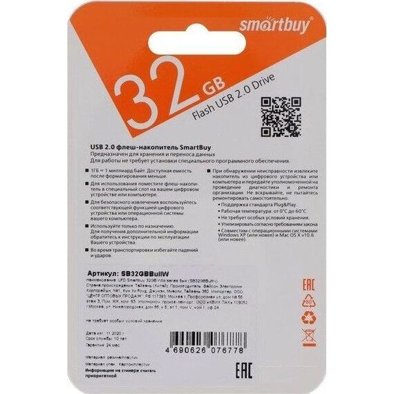 USB-флеш-накопитель Объем 32ГБ Интерфейсы USB 2.0 Скорость чтения Мб/с25 Скорость записи Мб/с15