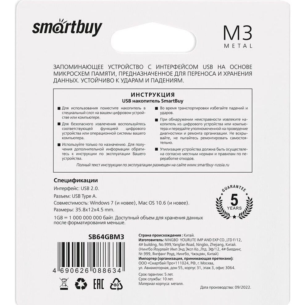 USB-флэш SMARTBUY (SB64GBM3) 064GB UFD 2.0 M3 Metal стальной
