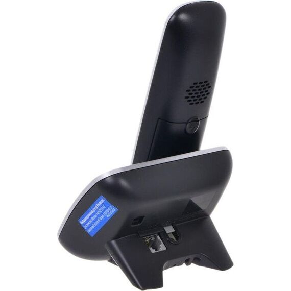 Комплектация: база, трубка Рабочая частота:1880-1900 МГц Стандарт:DECT Автоответчик:30 мин. Tелефонная книга:120 номеров Дисплей:LCD-TFT АОН/Caller ID:есть Сервис коротких сообщений (sms):нет Громкая связь: есть Внутренняя связь: между трубкой и базовым блоком Конференц-связь: есть Время работы в режим разговора:15 ч. Время работы в режим ожидания:170 ч. Радиус действия в помещении:50 м Радиус действия на открытой местности:300 м