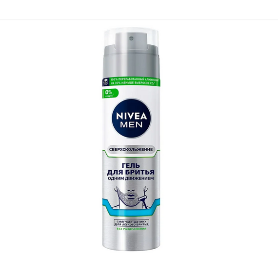 Гель для бритья одним движением «Сверхскольжение» для чувствительной кожи без спирта* от NIVEA MEN смягчает щетину для легкого срезания волосков и скольжения во время бритья. Помогает сбрить даже отросшую щетину одним движением. Дерматологически протестировано. Гель для бритья «Сверхскольжение» разработан специально для мужчин с чувствительной кожей.