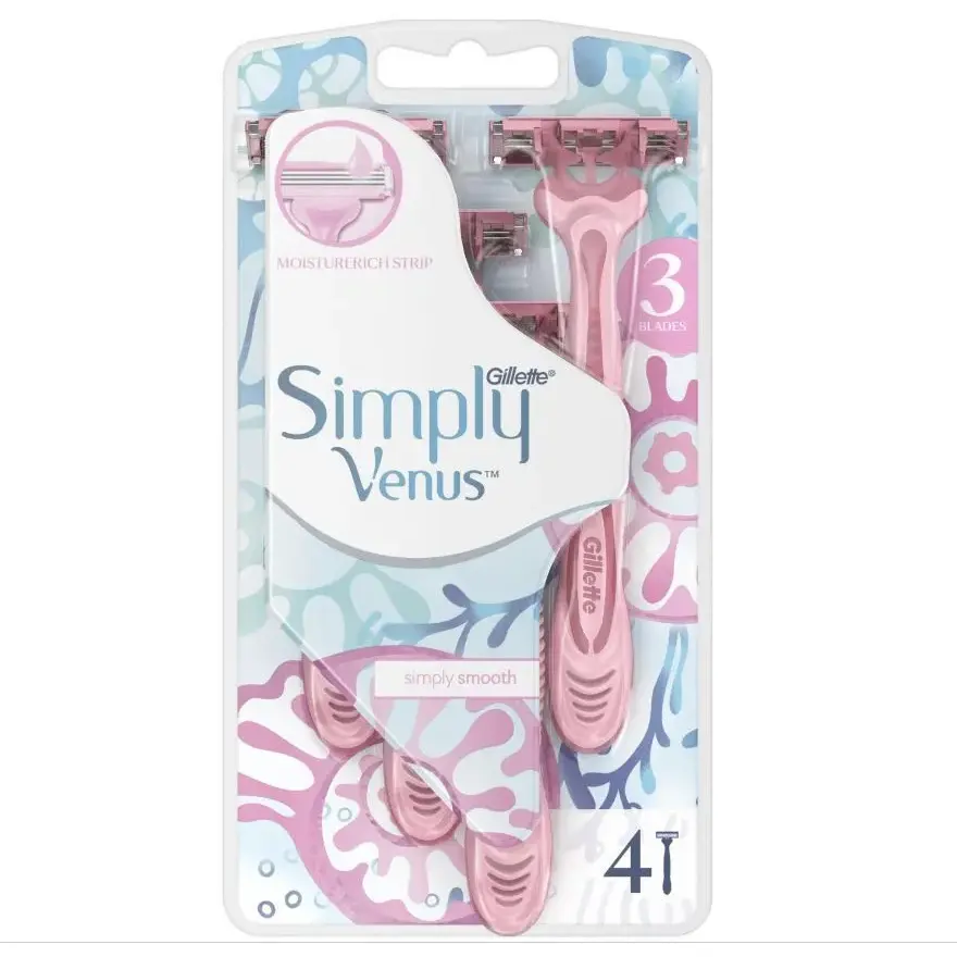 Gillette Simply Venus 3 Станки одноразовые для бритья, для женщин, 4 шт