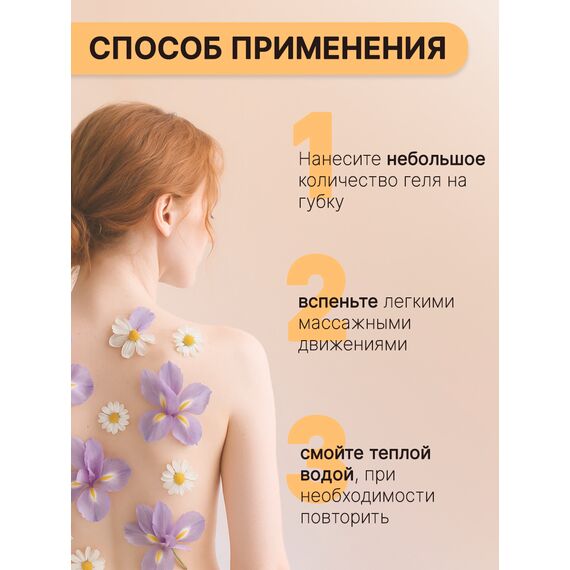 Небольшое количество средства нанесите на влажную кожу тела или мочалку. Вспеньте. Распределите лёгкими массирующими движениями по всему телу, смойте водой. Избегать попадания в глаза. При попадании в глаза тщательно промойте их водой.