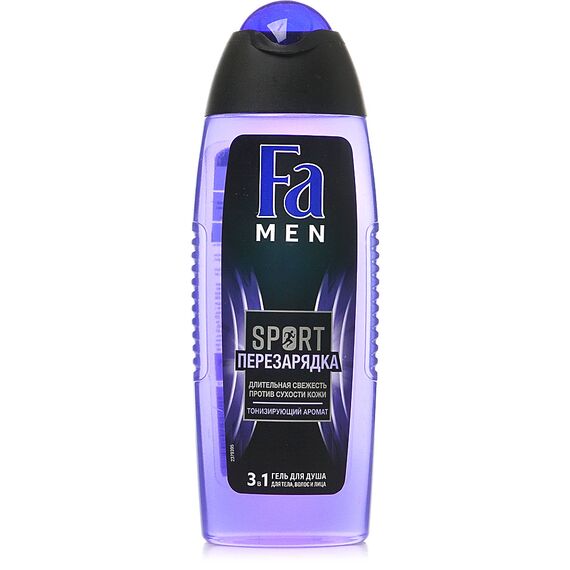 Открой для себя обновленную линейку гелей для душа Фа 250 мл, разработанную специально для мужчин. Сочетание активной формулы Геля для душа Fa men Sport перезарядка 3 в 1 для тела, волос и лица с бодрящими ароматами идеален для покорения новых вершин каждый день! Ощути длительную свежесть после занятий спортом! Сними напряжение с мышц и насладись ароматом лимона и мускуса. Компоненты формулы 3 в 1 эффективно очищают и освежают твое тело, лицо и волосы, способствуют защите кожи от пересушивания. Мужской гель Фа не содержит минеральных масел, рН-нейтрален к коже, проверен дерматологически.