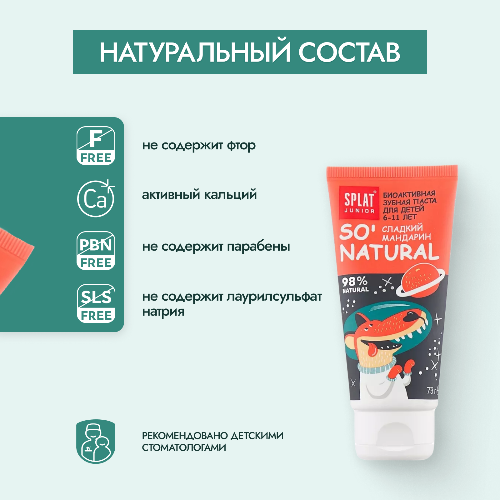 SPLAT Junior Детская зубная паста 6-11 лет, сладкий мандарин, 73 мл