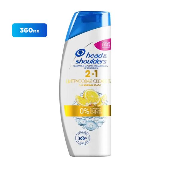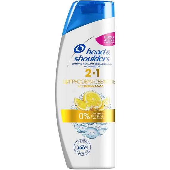 Шампунь против перхоти Head&Shoulders (Хед энд Шолдерс) Цитрусовая Свежесть 2в1 с экстрактом лимона предназначен для жирных волос и кожи головы. Он эффективно очищает жирные волосы и кожу головы, придавая волосам приятный цитрусовый аромат. Шампунь содержит активные действующие вещества — пиритион цинка и карбонат цинка — благодаря которым он обеспечивает до 100% свободы от перхоти. Его усовершенствованная формула Derma & Pure протестирована дерматологами, pH-сбалансирована, усилена антиоксидантами для бережного ухода за волосами и кожей головы. Не содержит парабенов, фосфатов и парафинов. Head&Shoulders — бренд шампуней № 1 в мире, который также заботится о планете: флакон на 40% состоит из переработанного пластика (за исключением крышки и этикетки) и пригоден для переработки.