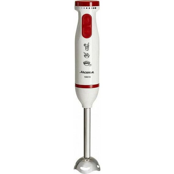 Параметры Максимальная мощность 1000 Вт Номинальная потребляемая мощность 600 Вт Описание Блендер электрический предназначен для смешивания, измельчения и взбивания продуктов и жидкостей в бытовых и аналогичных условиях Цвет: белый с красным Насадка и нож из нержавеющей стали 1 скорость работы Плавная регулировка скорости Режим «ТУРБО» Упаковка: цветная коробка