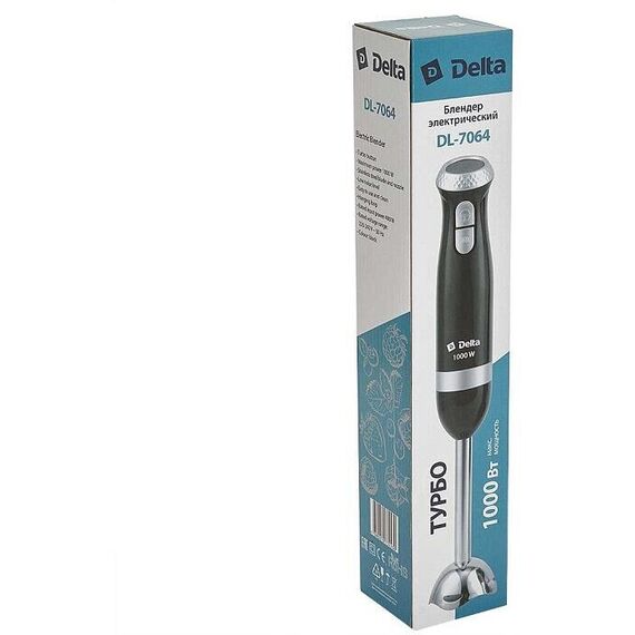 Блендер DELTA DL-7064 цвет: черный 1000 Вт, ТУРБО, насадка и нож из нерж.стали (12)