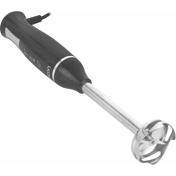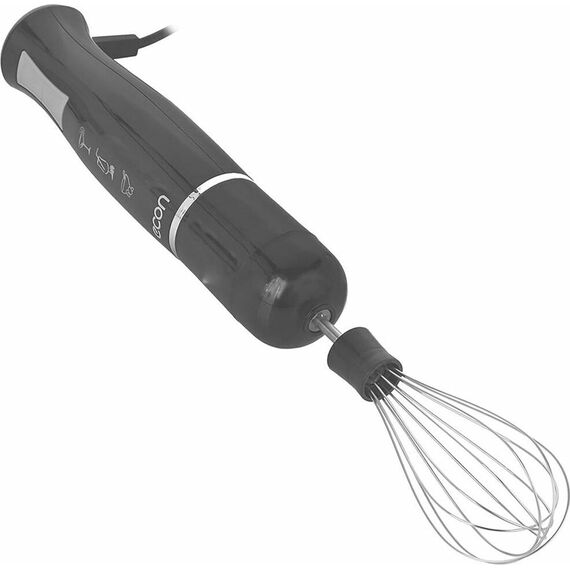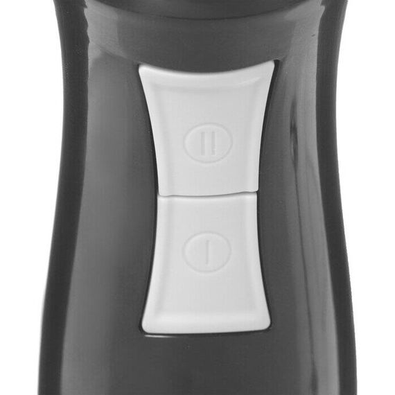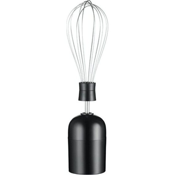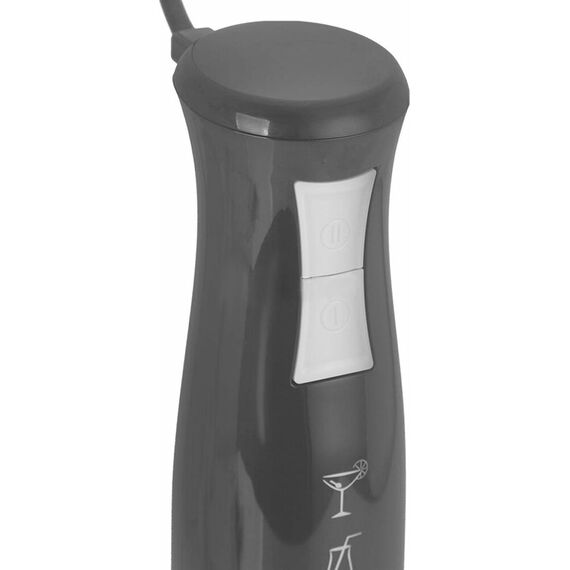 Блендер погружной, максимальная мощность 900 Вт, импульсный режим работы, 2 скорости, насадка-блендер из нержавеющей стали, съемная насадка-венчик из нержавеющей стали, мини-измельчитель 500 мл, мерный стакан 700 мл, цвет черный с серым