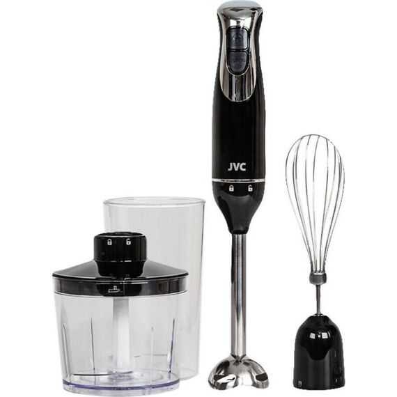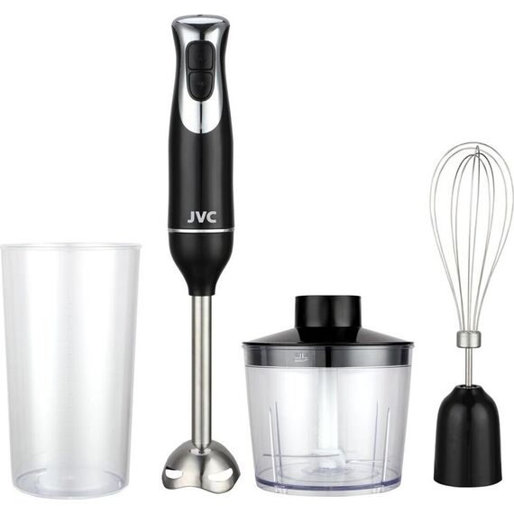 Блендер погружной, набор, максимальная мощность 800 ватт, 2 скорости включая режим ТУРБО , погружная часть блендера из нержавеющей стали, измельчитель 500 мл, мерный стакан 700 мл, венчик для взбивания, цвет корпуса черный с хромированной вставкой.